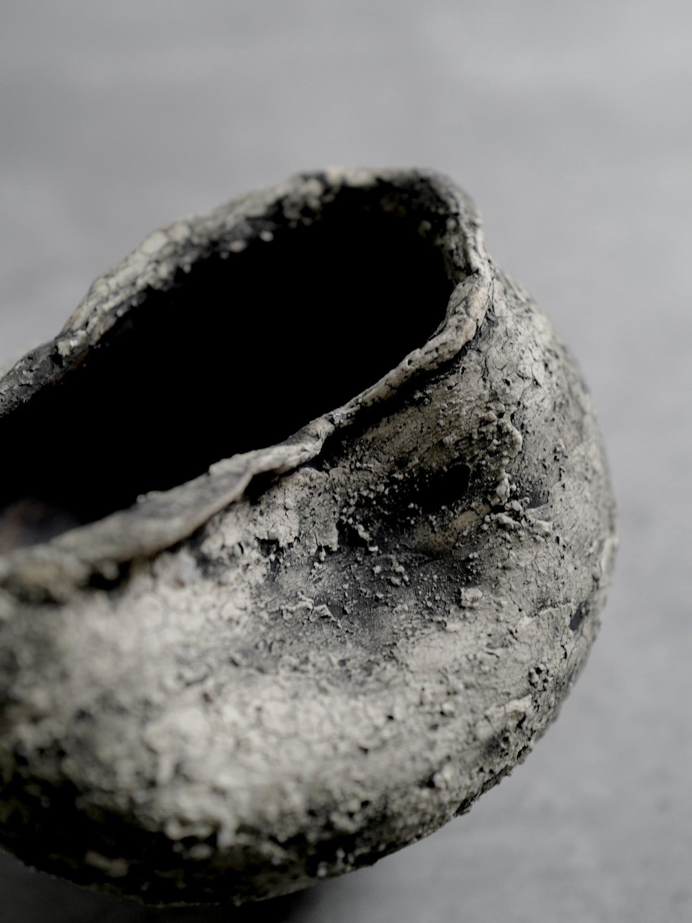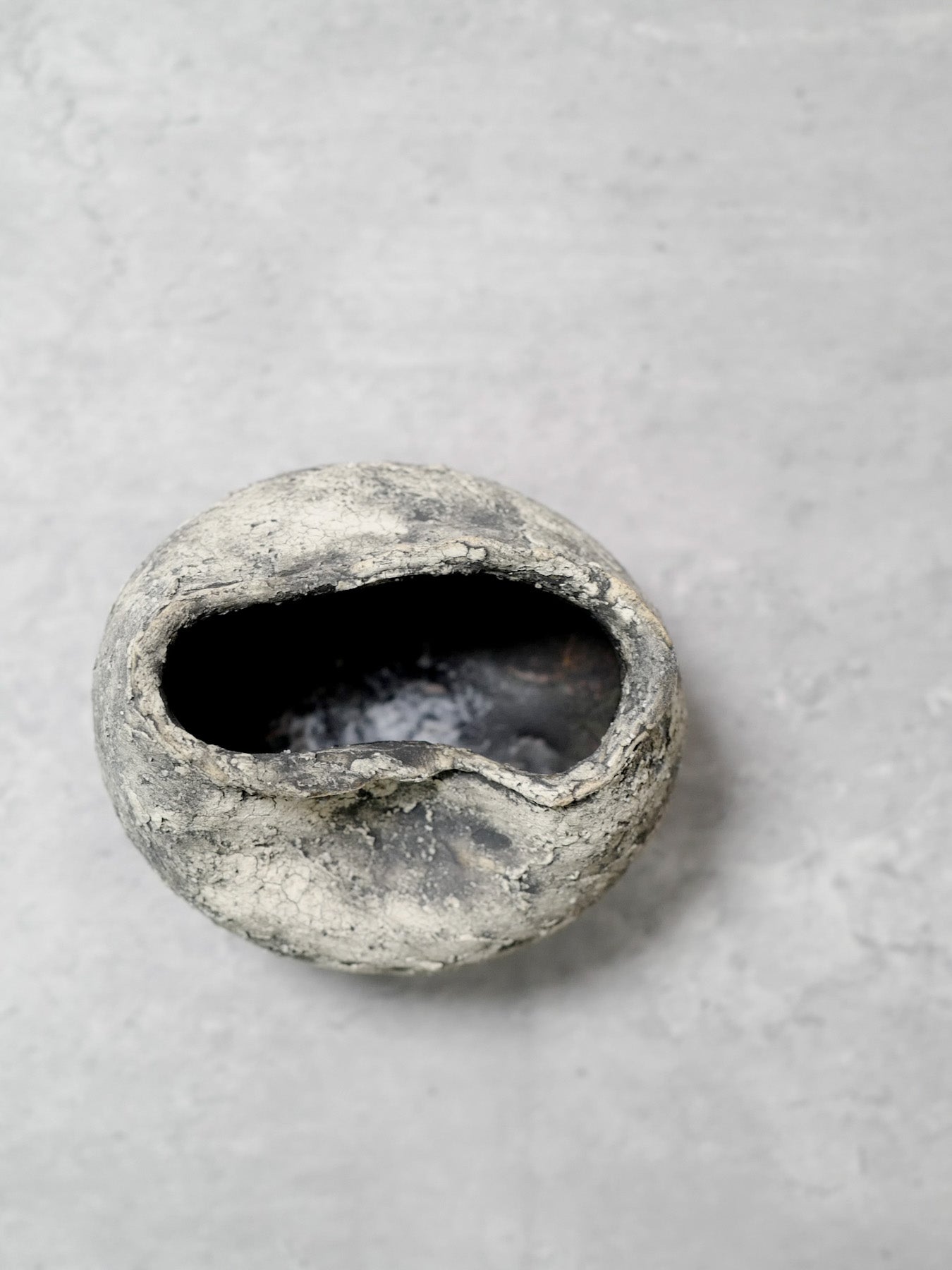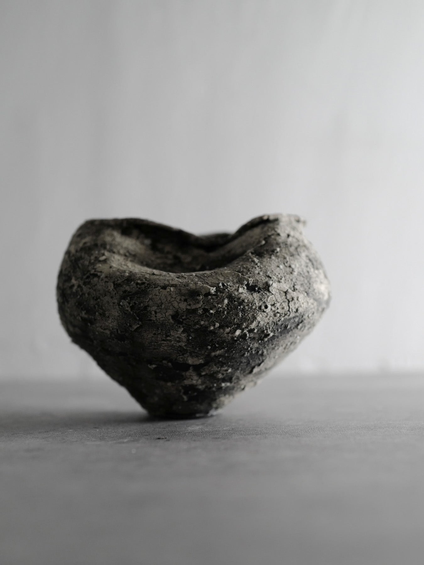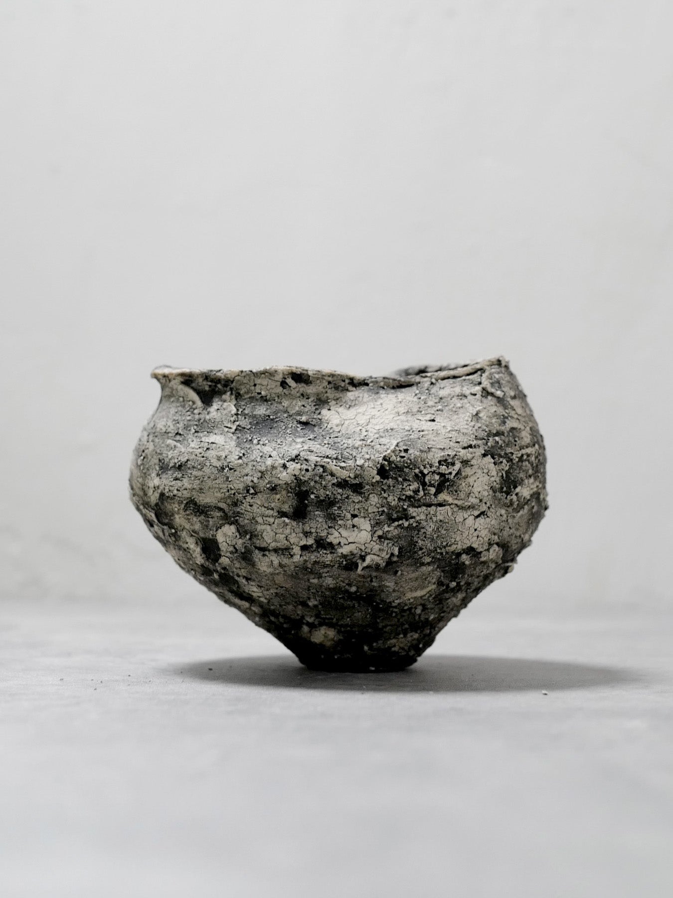 Handling & Care Over time, the piece may undergo changes in texture, peeling, or discoloration—these are integral aspects of its expression. Each work is protected with a varnish to slow pigment fading, and most are treated with a water-repellent coating. However, as the aesthetic prioritizes cracks and surface fragility, please avoid filling it with water. Enjoy it as an object of still presence within space, rather than as a functional vessel. While every effort has been made to capture the work's true color and texture in photographs, subtle variations may appear depending on the lighting and environment in which it is viewed. For inquiries or additional photographs, please feel free to contact us.