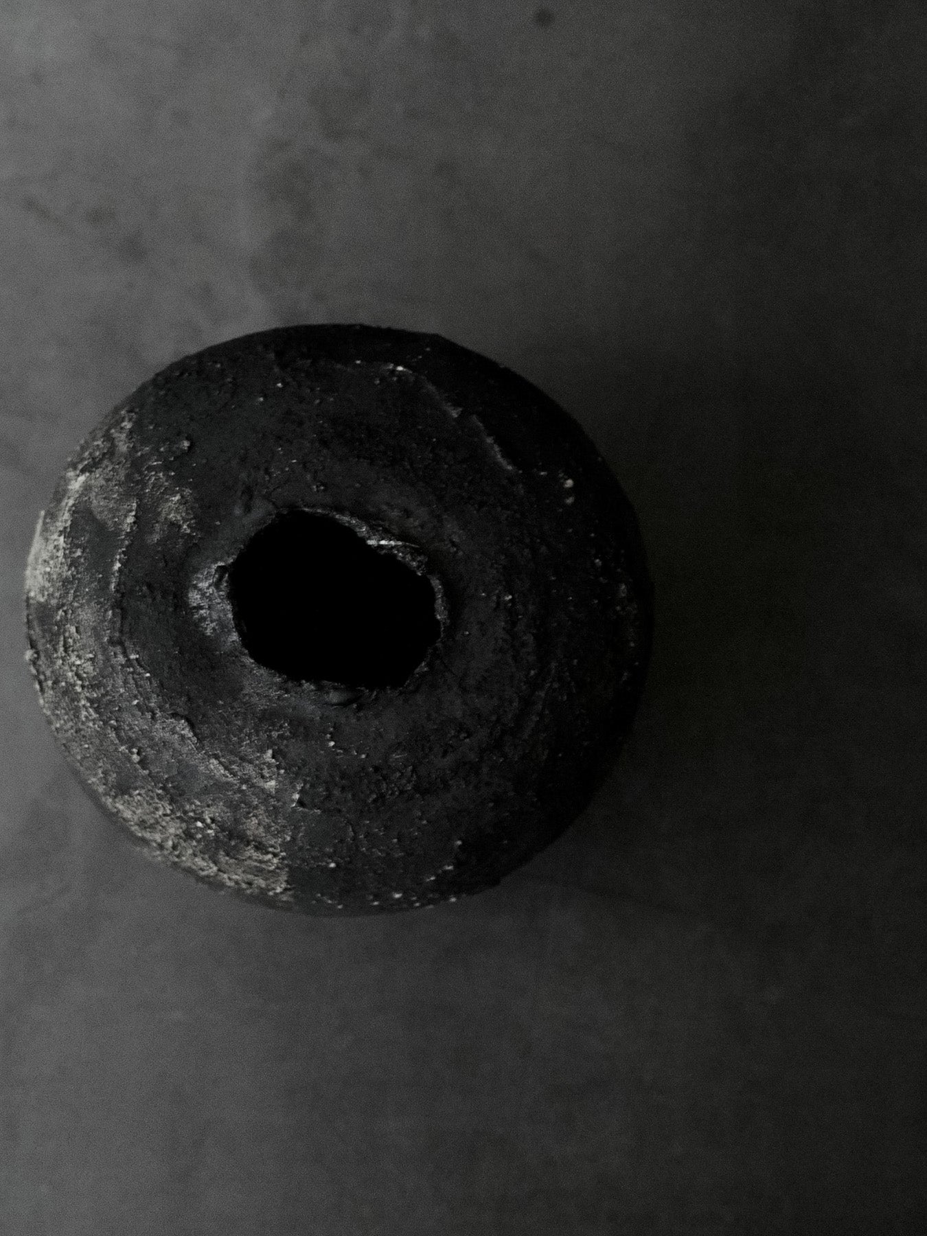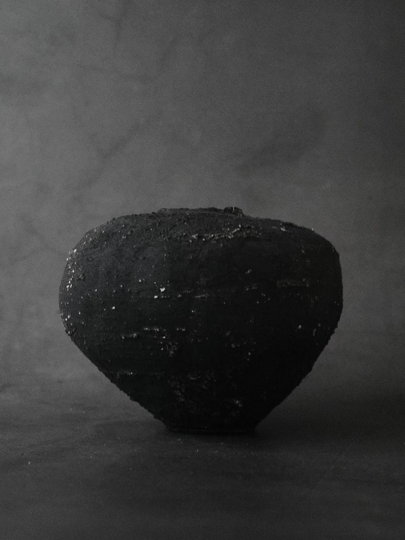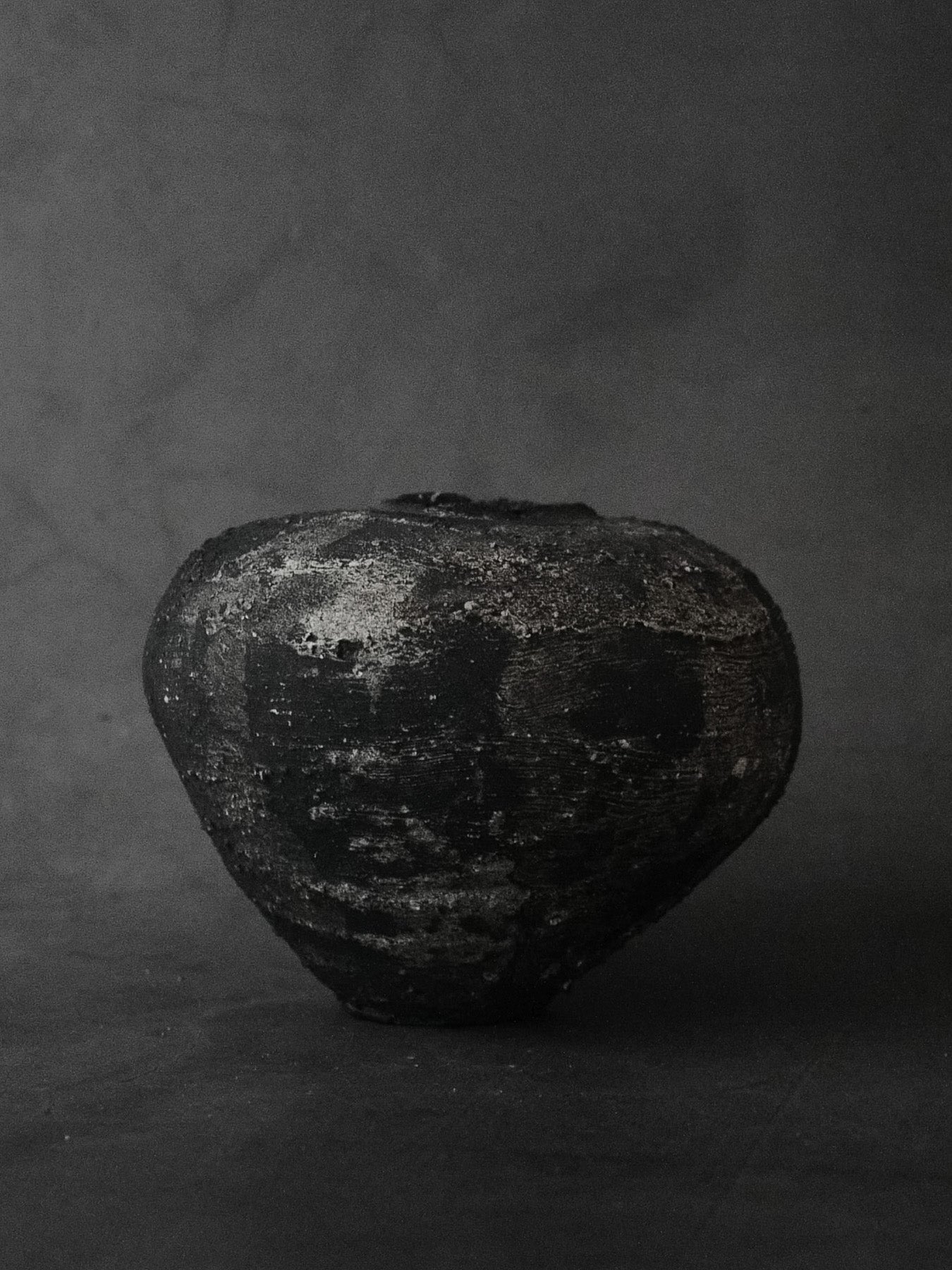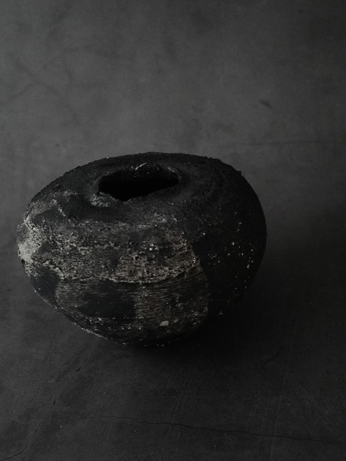 Handling & Care Over time, the piece may undergo changes in texture, peeling, or discoloration—these are integral aspects of its expression. Each work is protected with a varnish to slow pigment fading, and most are treated with a water-repellent coating. However, as the aesthetic prioritizes cracks and surface fragility, please avoid filling it with water. Enjoy it as an object of still presence within space, rather than as a functional vessel. While every effort has been made to capture the work’s true color and texture in photographs, subtle variations may appear depending on the lighting and environment in which it is viewed. For inquiries or additional photographs, please feel free to contact us.