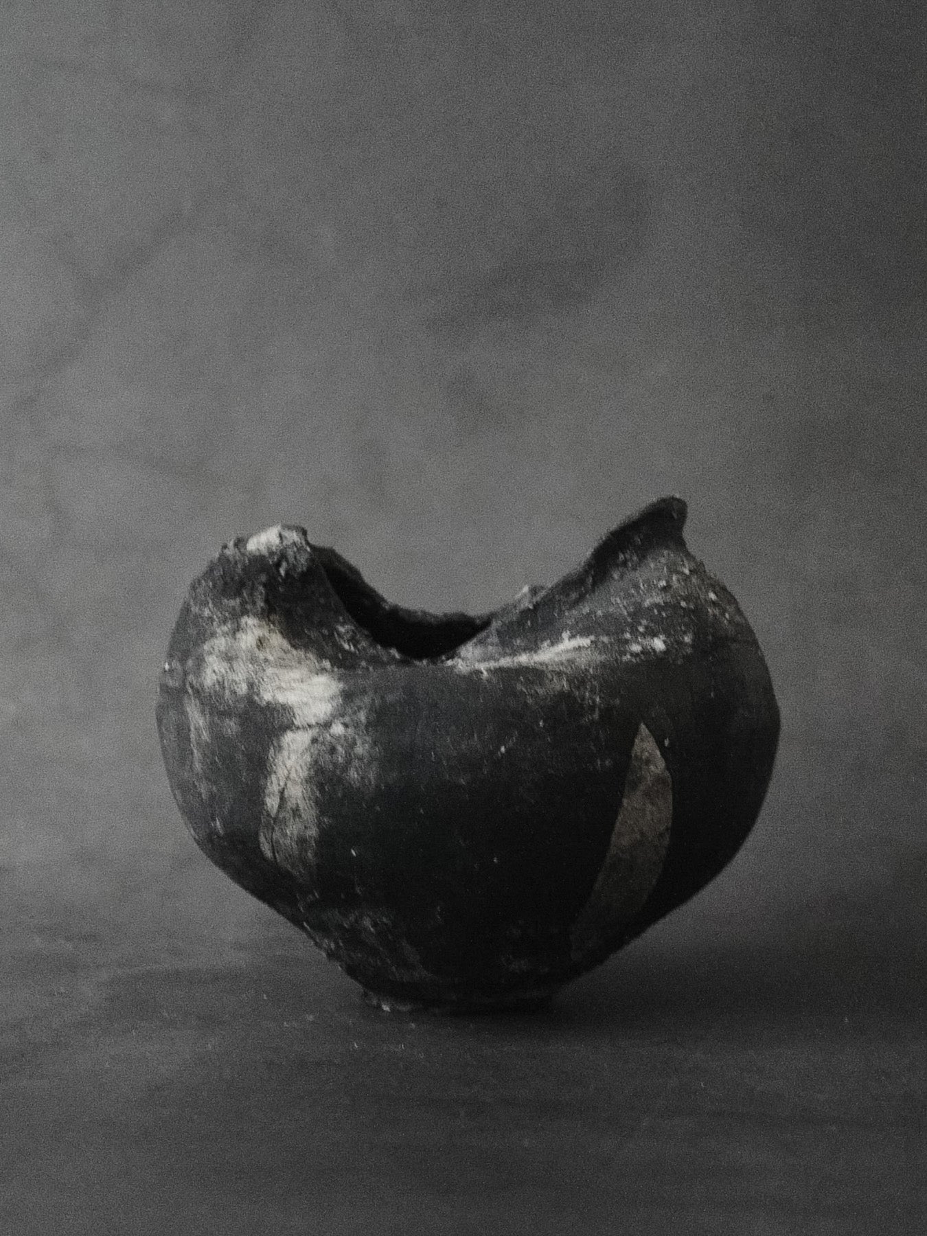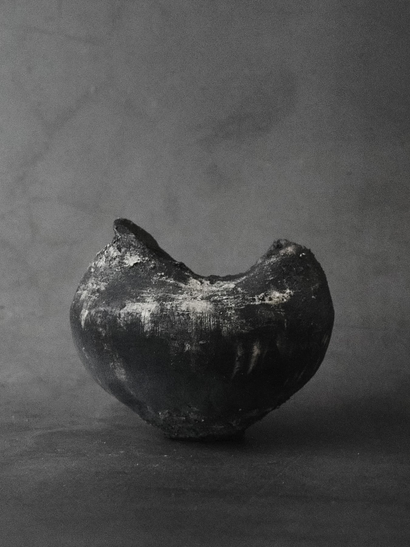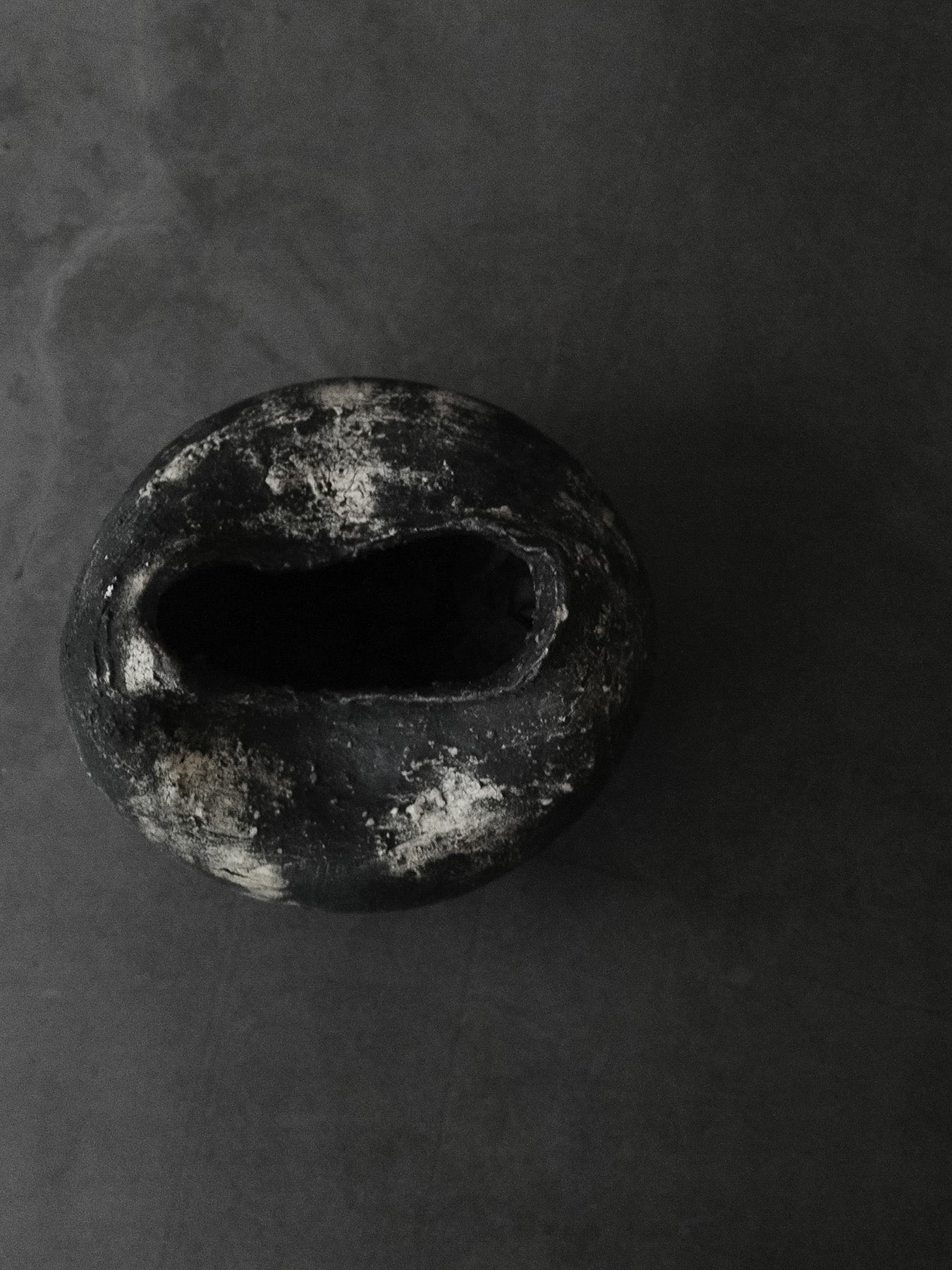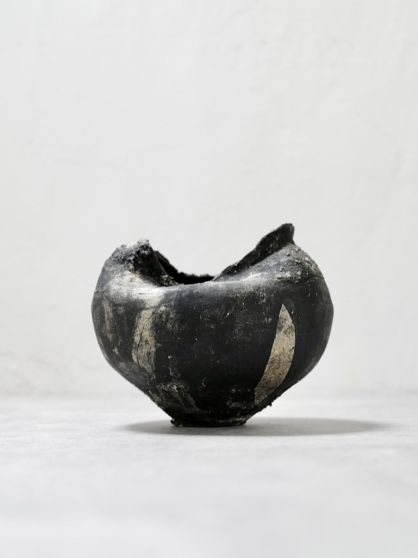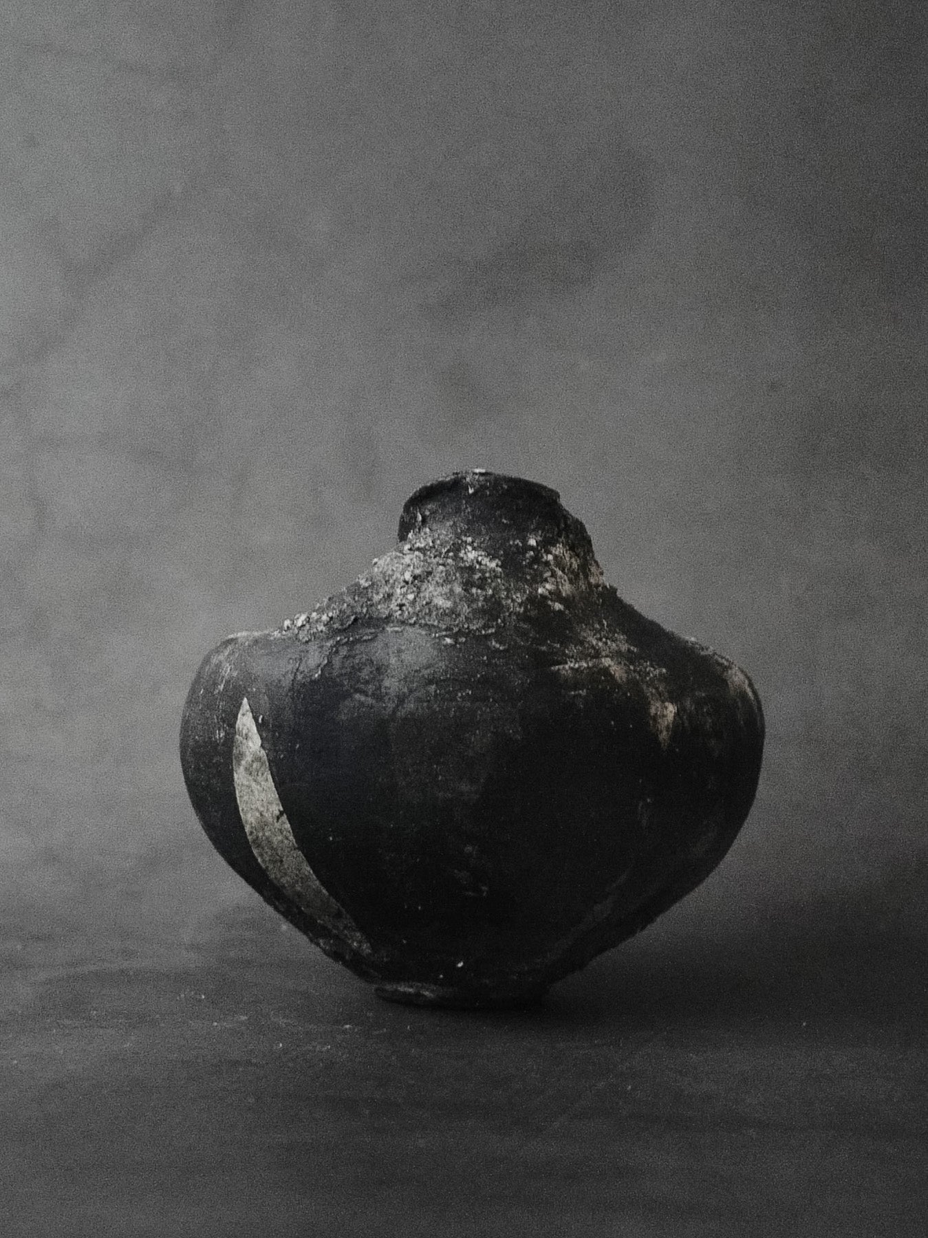 Handling & Care Over time, the piece may undergo changes in texture, peeling, or discoloration—these are integral aspects of its expression. Each work is protected with a varnish to slow pigment fading, and most are treated with a water-repellent coating. However, as the aesthetic prioritizes cracks and surface fragility, please avoid filling it with water. Enjoy it as an object of still presence within space, rather than as a functional vessel. While every effort has been made to capture the work’s true color and texture in photographs, subtle variations may appear depending on the lighting and environment in which it is viewed. For inquiries or additional photographs, please feel free to contact us.