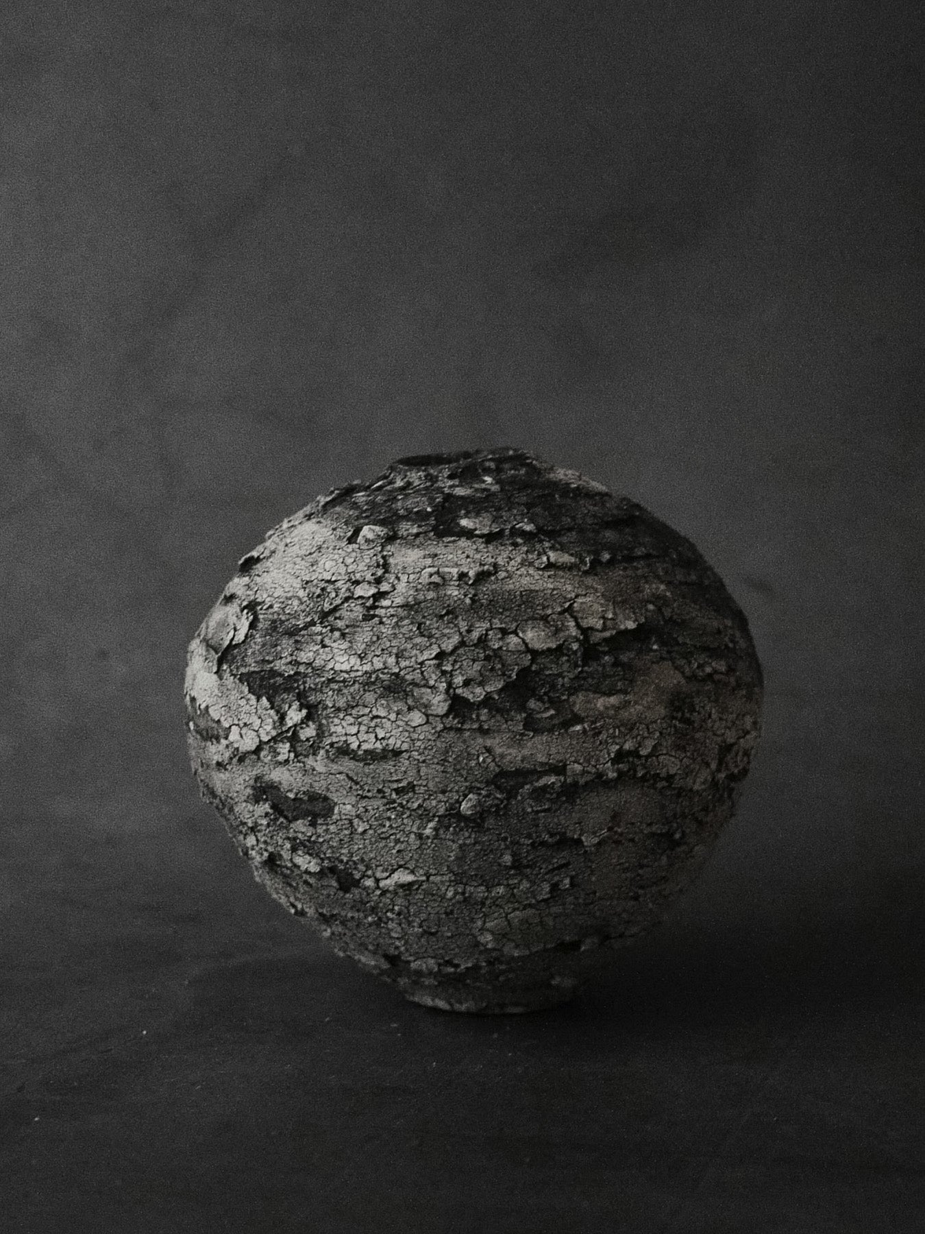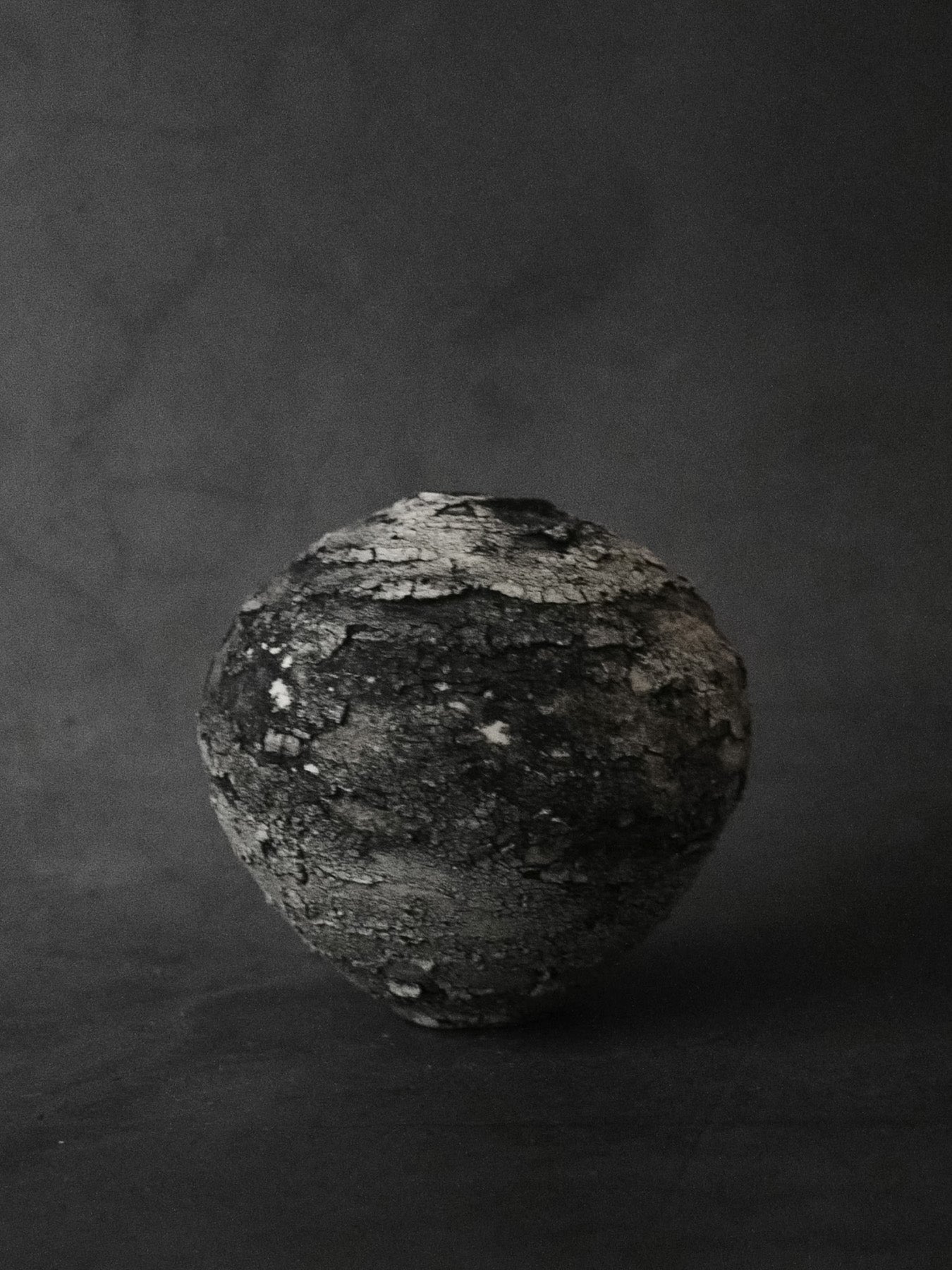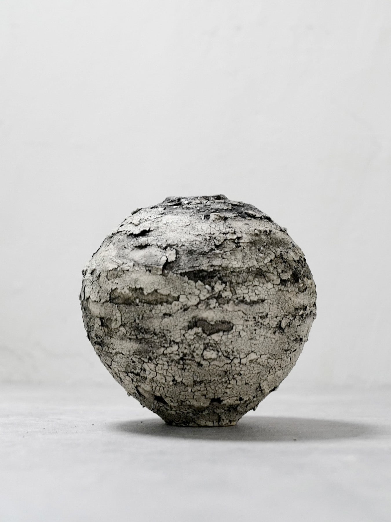 Handling & Care Over time, the piece may undergo changes in texture, peeling, or discoloration—these are integral aspects of its expression. Each work is protected with a varnish to slow pigment fading, and most are treated with a water-repellent coating. However, as the aesthetic prioritizes cracks and surface fragility, please avoid filling it with water. Enjoy it as an object of still presence within space, rather than as a functional vessel. While every effort has been made to capture the work’s true color and texture in photographs, subtle variations may appear depending on the lighting and environment in which it is viewed. For inquiries or additional photographs, please feel free to contact us.