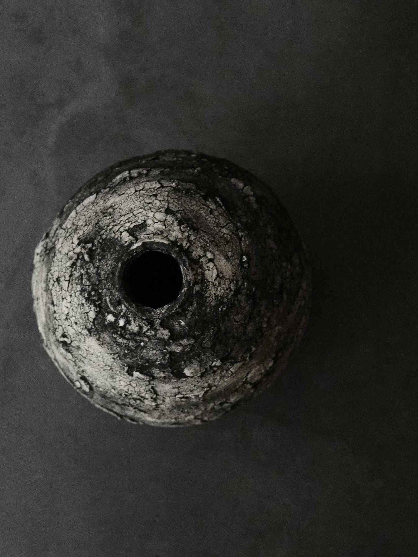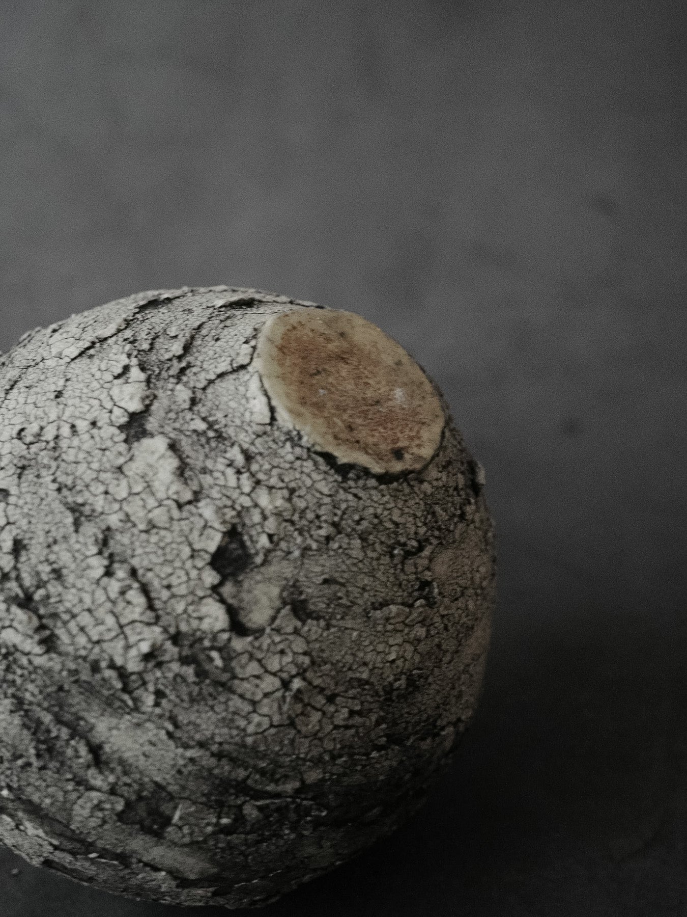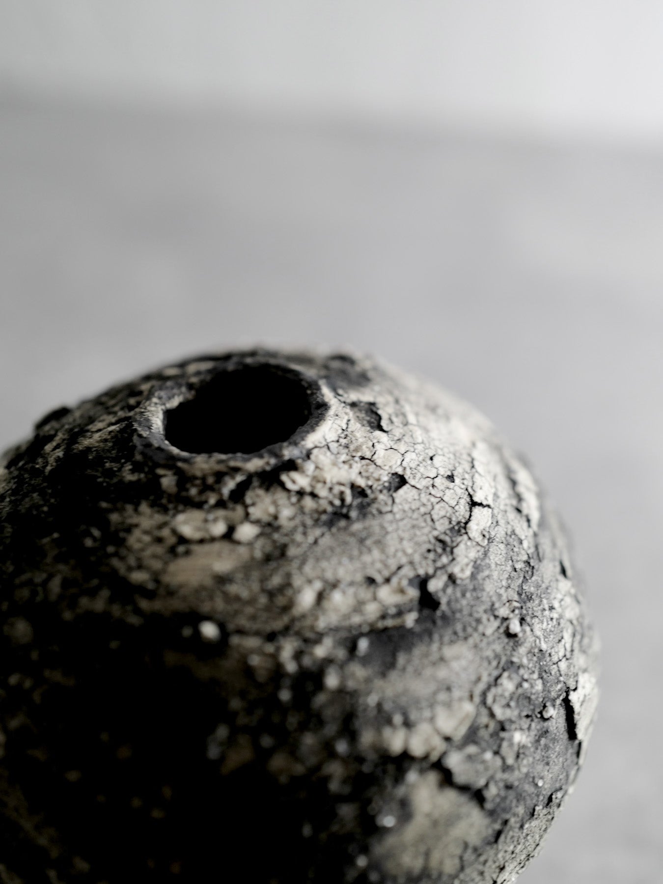 Handling & Care Over time, the piece may undergo changes in texture, peeling, or discoloration—these are integral aspects of its expression. Each work is protected with a varnish to slow pigment fading, and most are treated with a water-repellent coating. However, as the aesthetic prioritizes cracks and surface fragility, please avoid filling it with water. Enjoy it as an object of still presence within space, rather than as a functional vessel. While every effort has been made to capture the work’s true color and texture in photographs, subtle variations may appear depending on the lighting and environment in which it is viewed. For inquiries or additional photographs, please feel free to contact us.