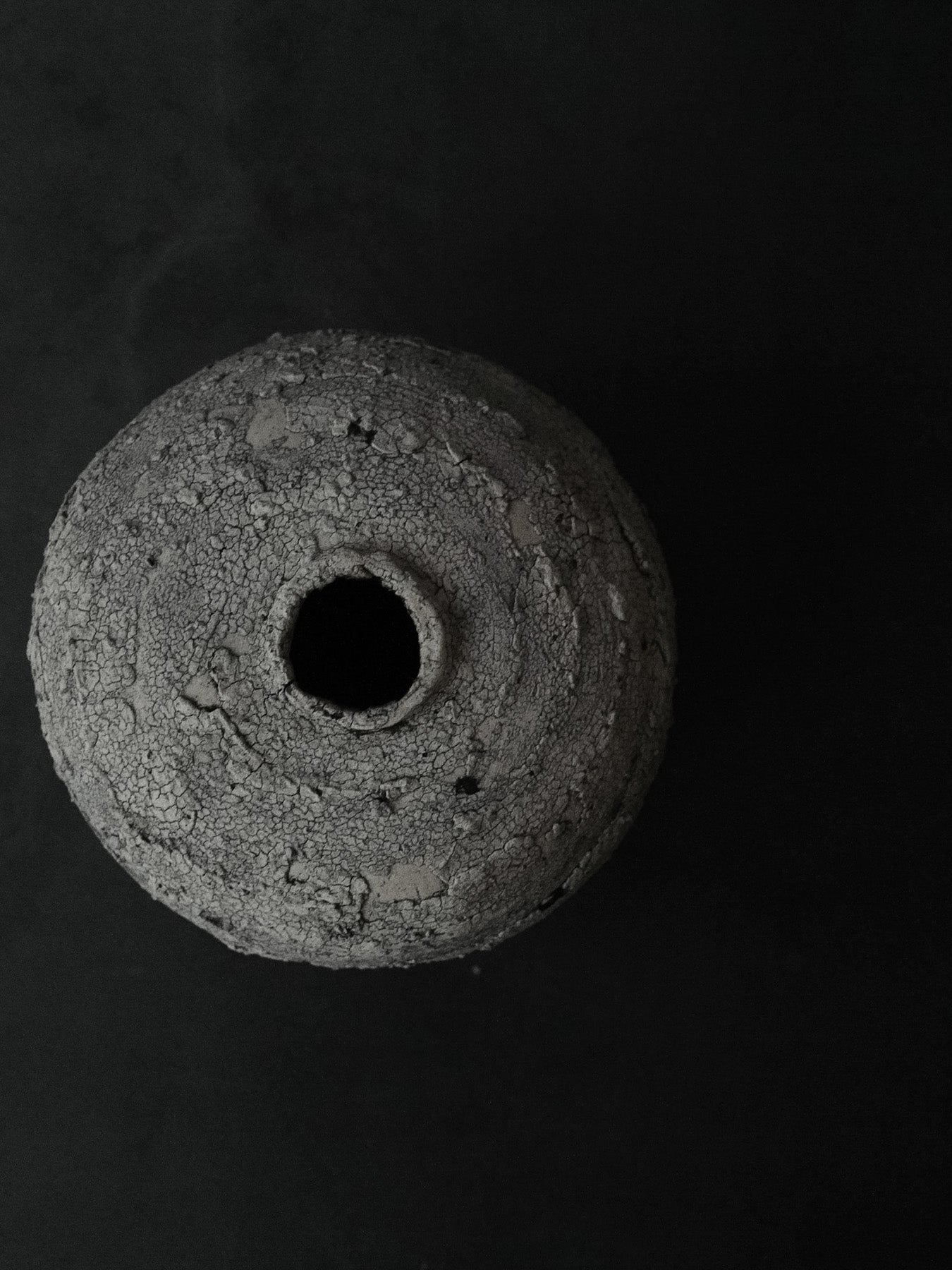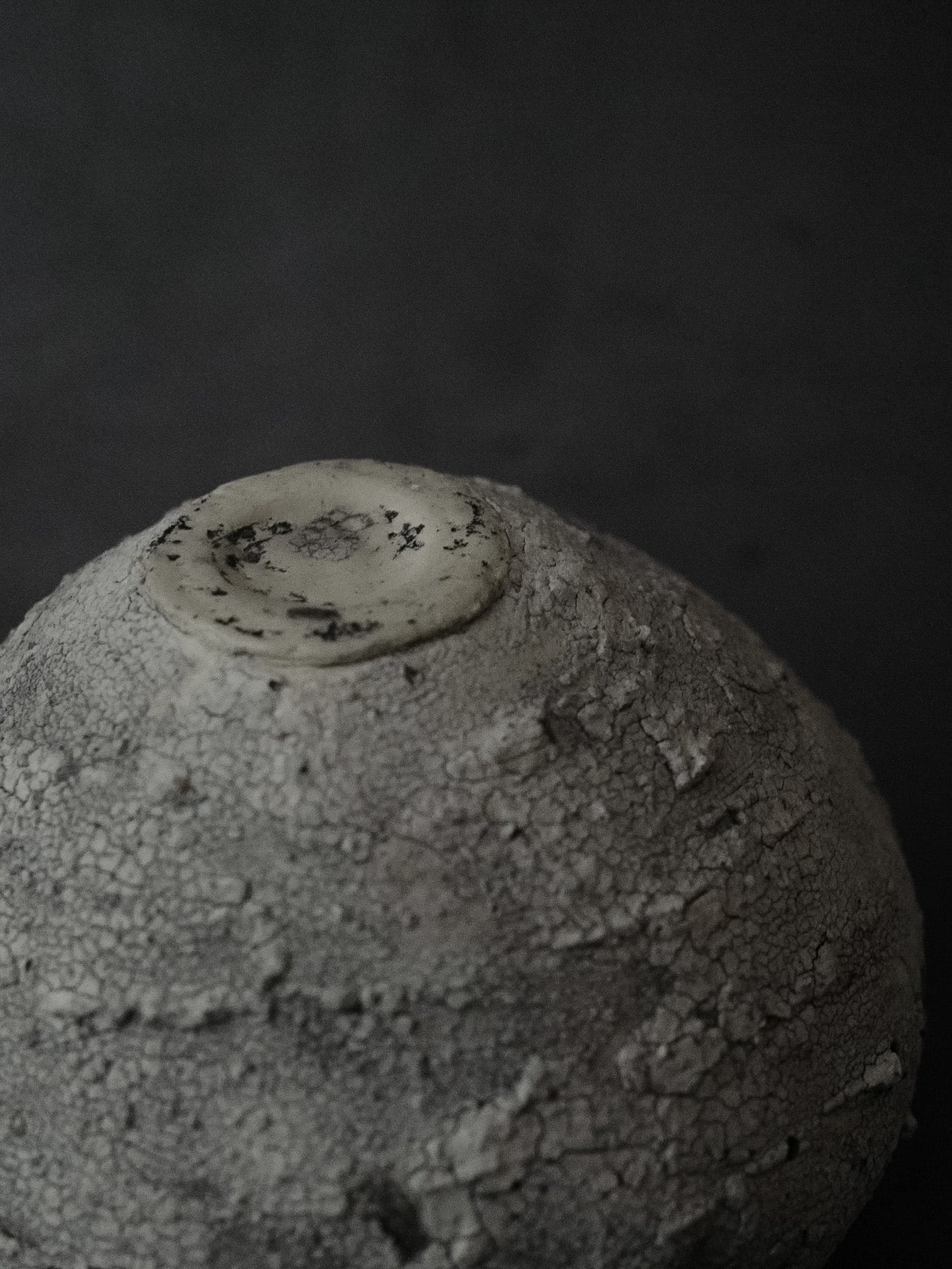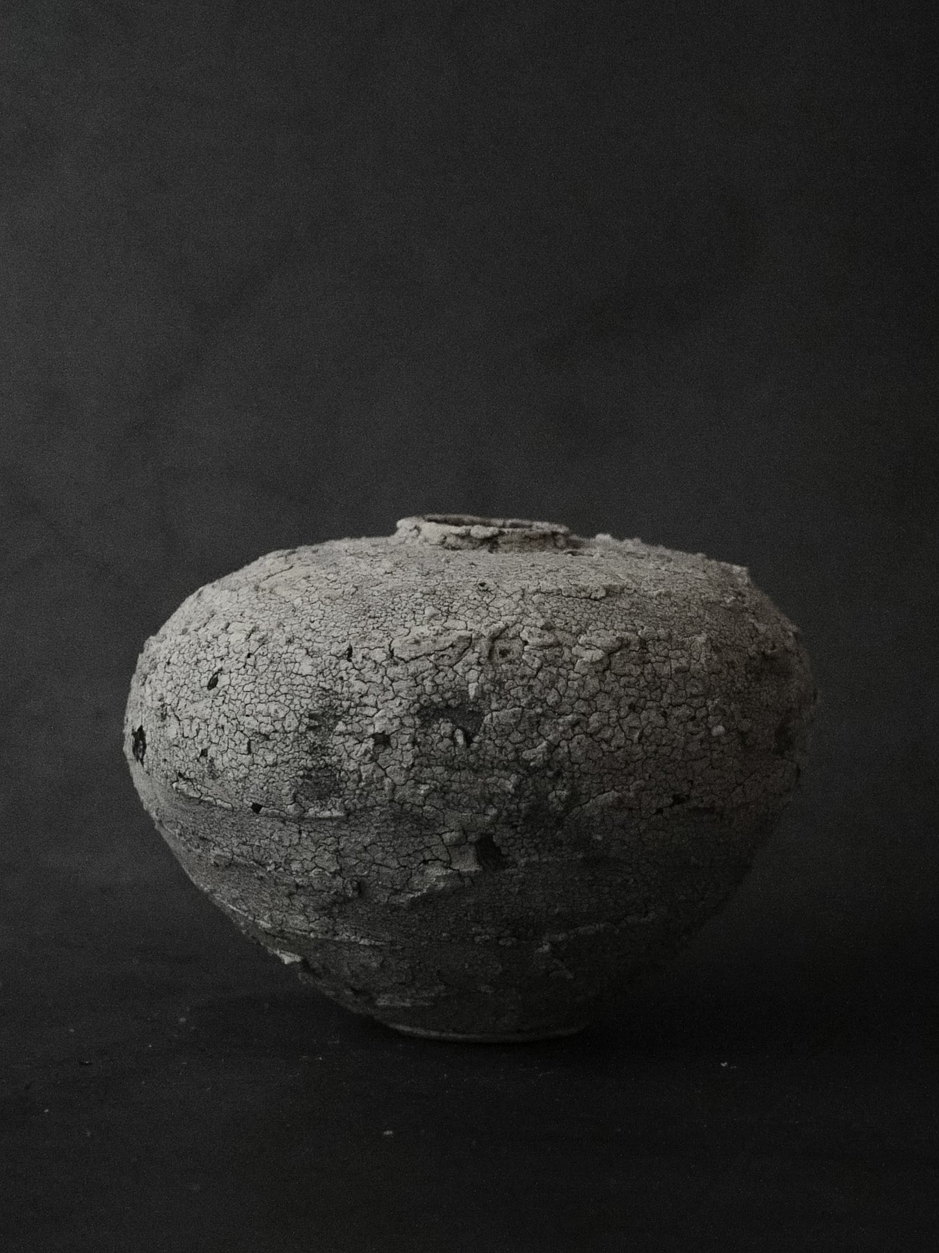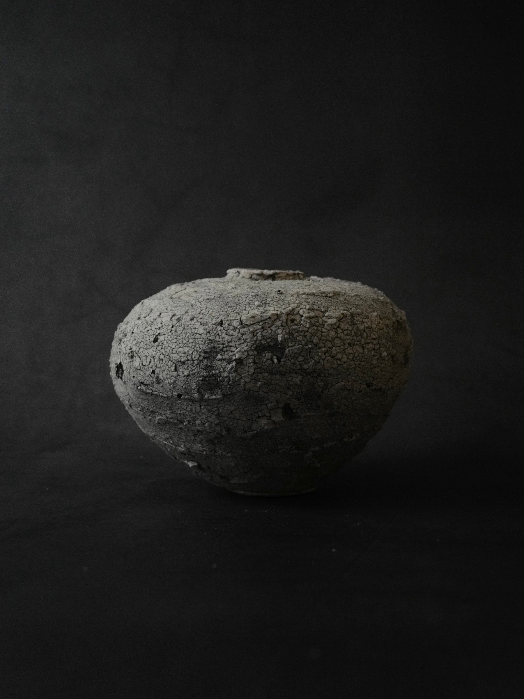 Handling & Care Over time, the piece may undergo changes in texture, peeling, or discoloration—these are integral aspects of its expression. Each work is protected with a varnish to slow pigment fading, and most are treated with a water-repellent coating. However, as the aesthetic prioritizes cracks and surface fragility, please avoid filling it with water. Enjoy it as an object of still presence within space, rather than as a functional vessel. While every effort has been made to capture the work’s true color and texture in photographs, subtle variations may appear depending on the lighting and environment in which it is viewed. For inquiries or additional photographs, please feel free to contact us.