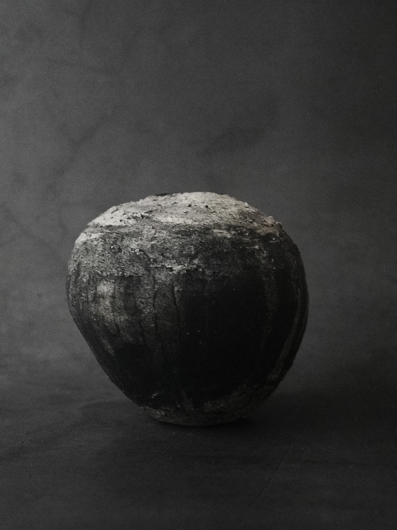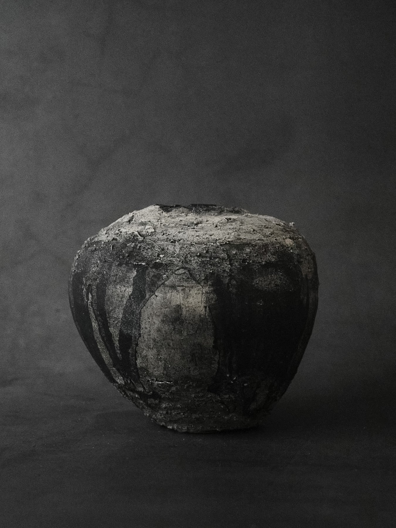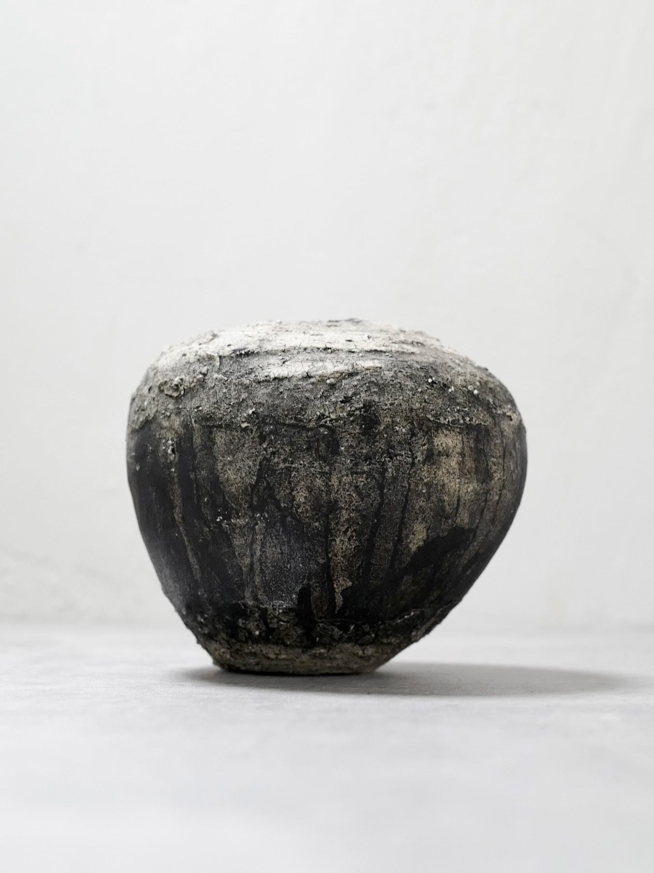 Handling & Care Over time, the piece may undergo changes in texture, peeling, or discoloration—these are integral aspects of its expression. Each work is protected with a varnish to slow pigment fading, and most are treated with a water-repellent coating. However, as the aesthetic prioritizes cracks and surface fragility, please avoid filling it with water. Enjoy it as an object of still presence within space, rather than as a functional vessel. While every effort has been made to capture the work’s true color and texture in photographs, subtle variations may appear depending on the lighting and environment in which it is viewed. For inquiries or additional photographs, please feel free to contact us.