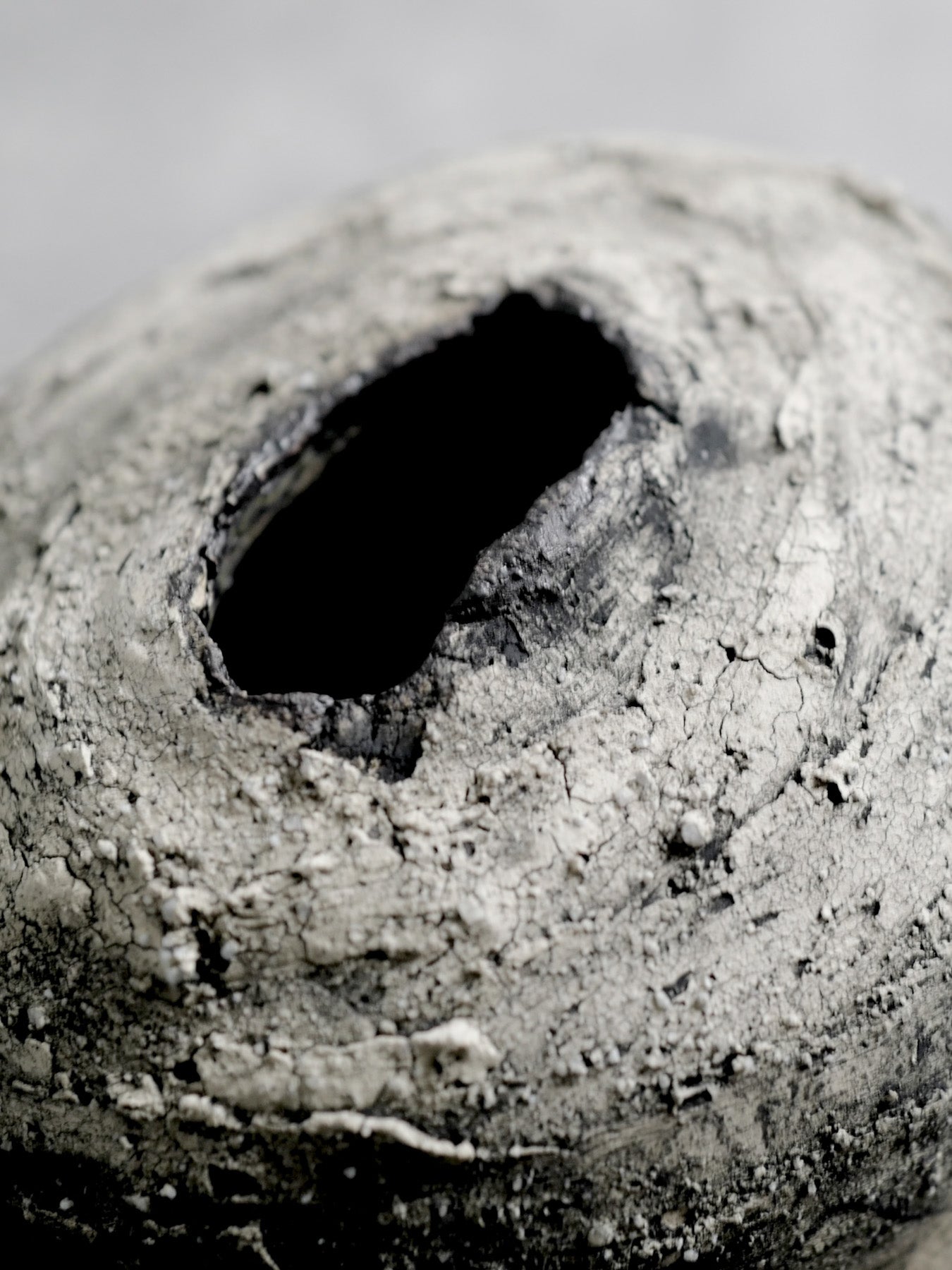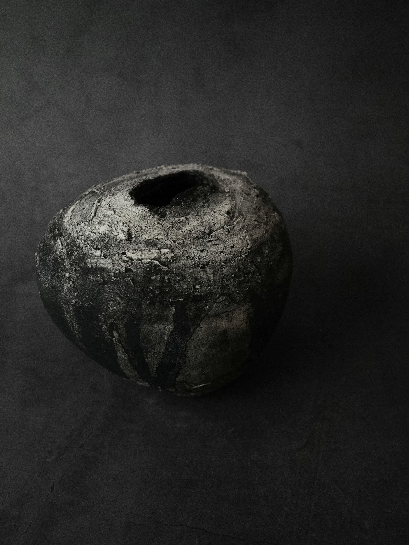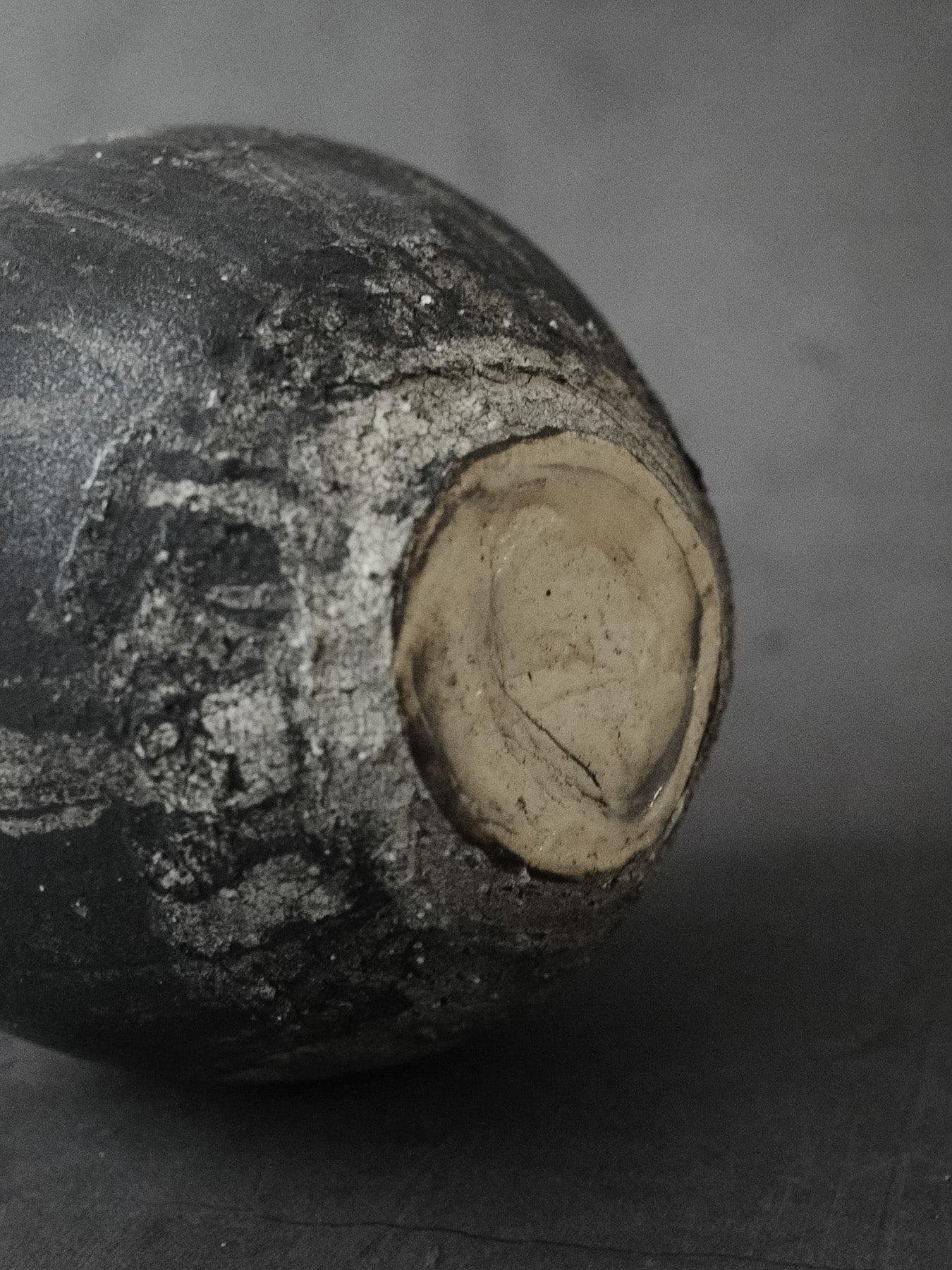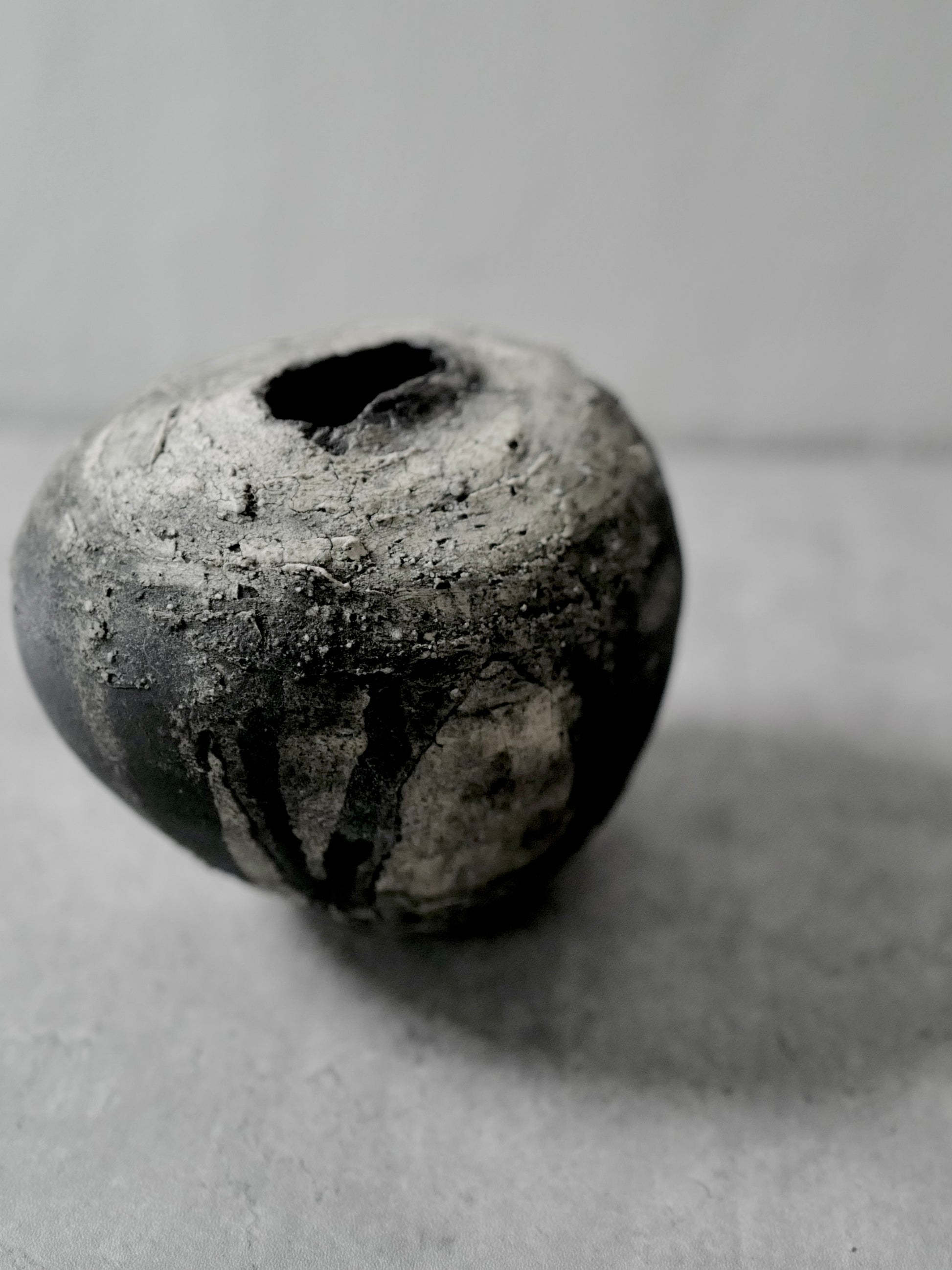 Handling & Care Over time, the piece may undergo changes in texture, peeling, or discoloration—these are integral aspects of its expression. Each work is protected with a varnish to slow pigment fading, and most are treated with a water-repellent coating. However, as the aesthetic prioritizes cracks and surface fragility, please avoid filling it with water. Enjoy it as an object of still presence within space, rather than as a functional vessel. While every effort has been made to capture the work’s true color and texture in photographs, subtle variations may appear depending on the lighting and environment in which it is viewed. For inquiries or additional photographs, please feel free to contact us.