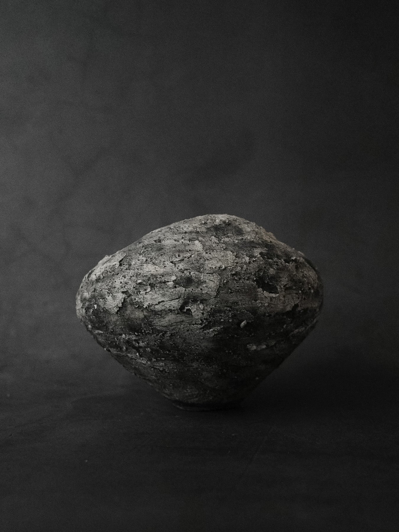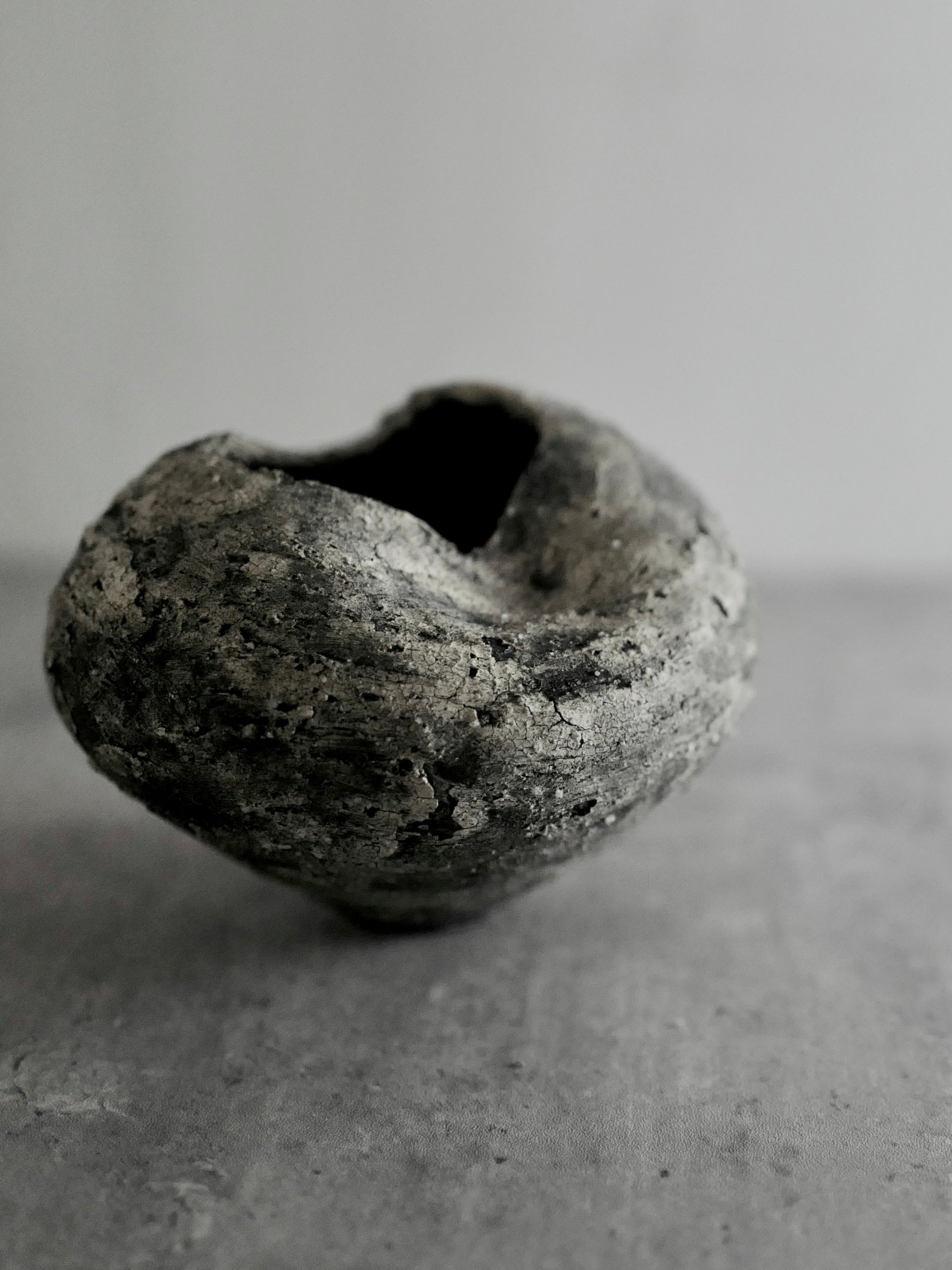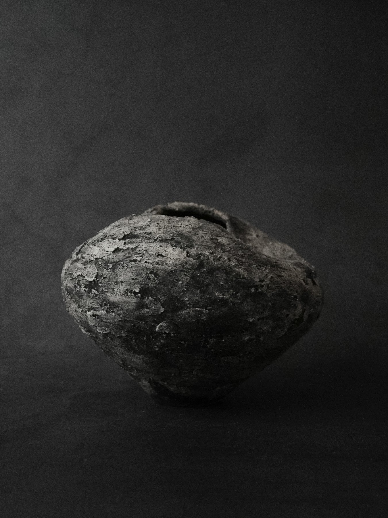 Handling & Care Over time, the piece may undergo changes in texture, peeling, or discoloration—these are integral aspects of its expression. Each work is protected with a varnish to slow pigment fading, and most are treated with a water-repellent coating. However, as the aesthetic prioritizes cracks and surface fragility, please avoid filling it with water. Enjoy it as an object of still presence within space, rather than as a functional vessel. While every effort has been made to capture the work’s true color and texture in photographs, subtle variations may appear depending on the lighting and environment in which it is viewed. For inquiries or additional photographs, please feel free to contact us.