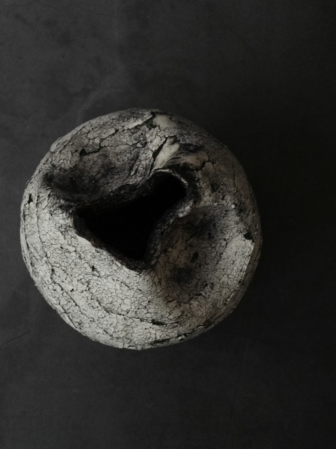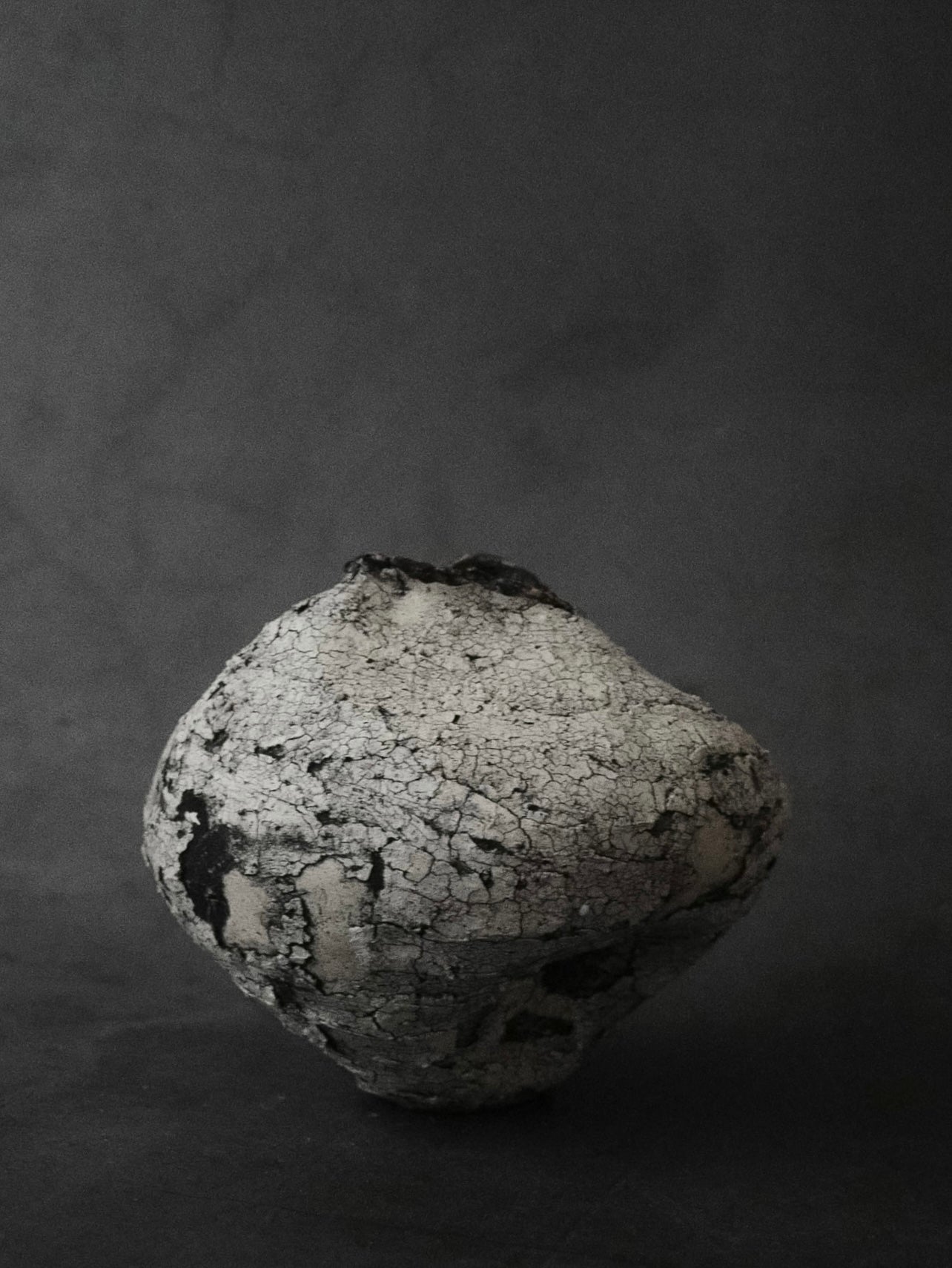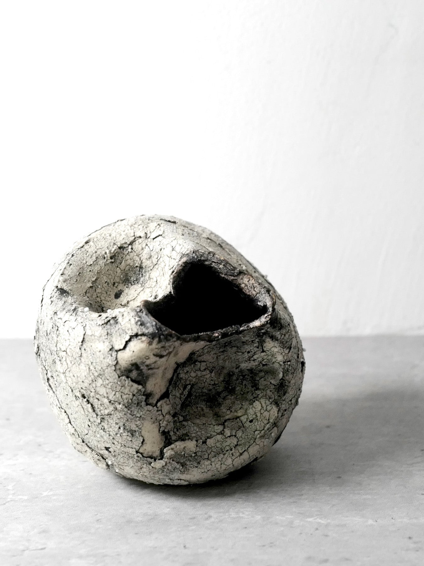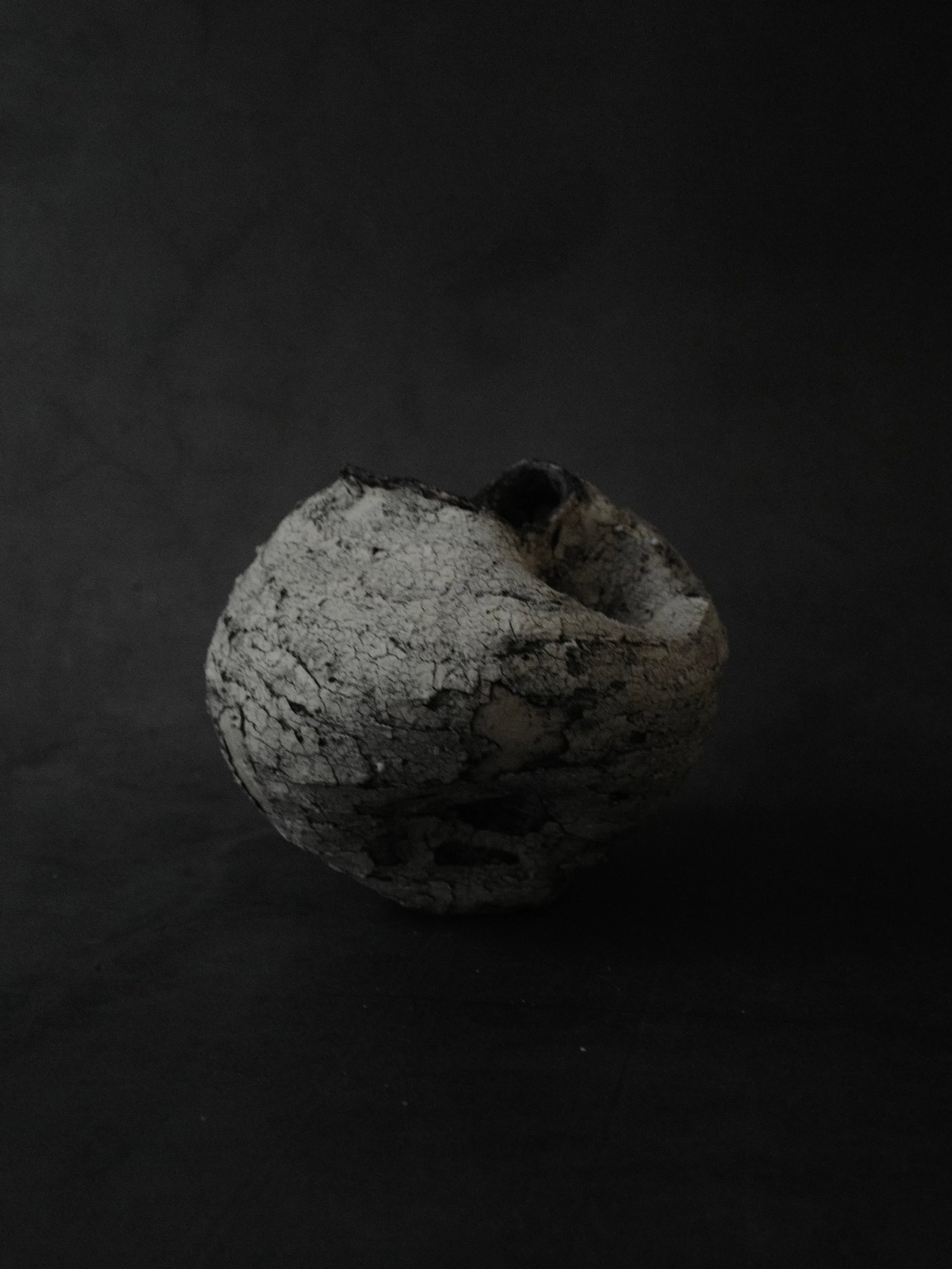 Handling & Care Over time, the piece may undergo changes in texture, peeling, or discoloration—these are integral aspects of its expression. Each work is protected with a varnish to slow pigment fading, and most are treated with a water-repellent coating. However, as the aesthetic prioritizes cracks and surface fragility, please avoid filling it with water. Enjoy it as an object of still presence within space, rather than as a functional vessel. While every effort has been made to capture the work’s true color and texture in photographs, subtle variations may appear depending on the lighting and environment in which it is viewed. For inquiries or additional photographs, please feel free to contact us.