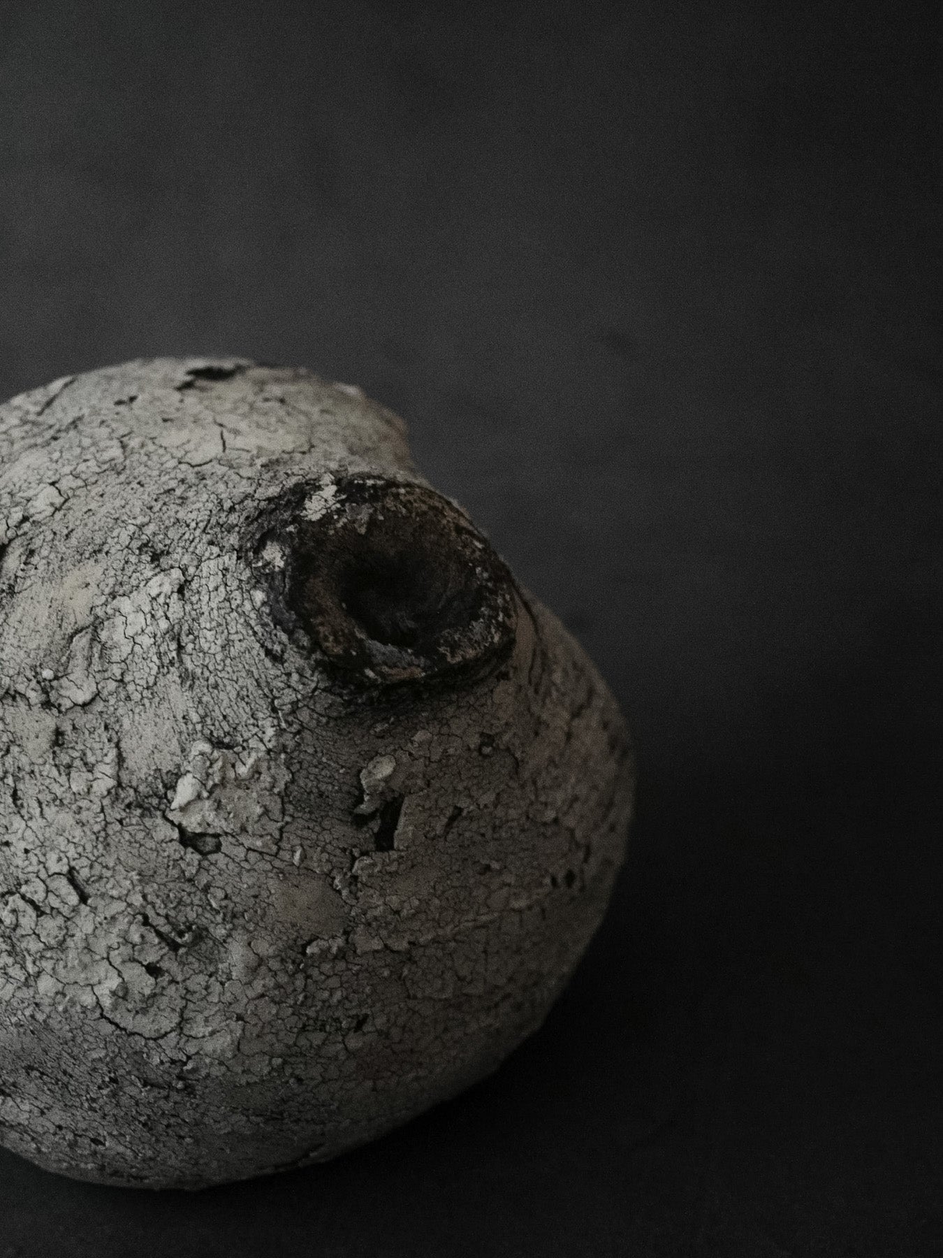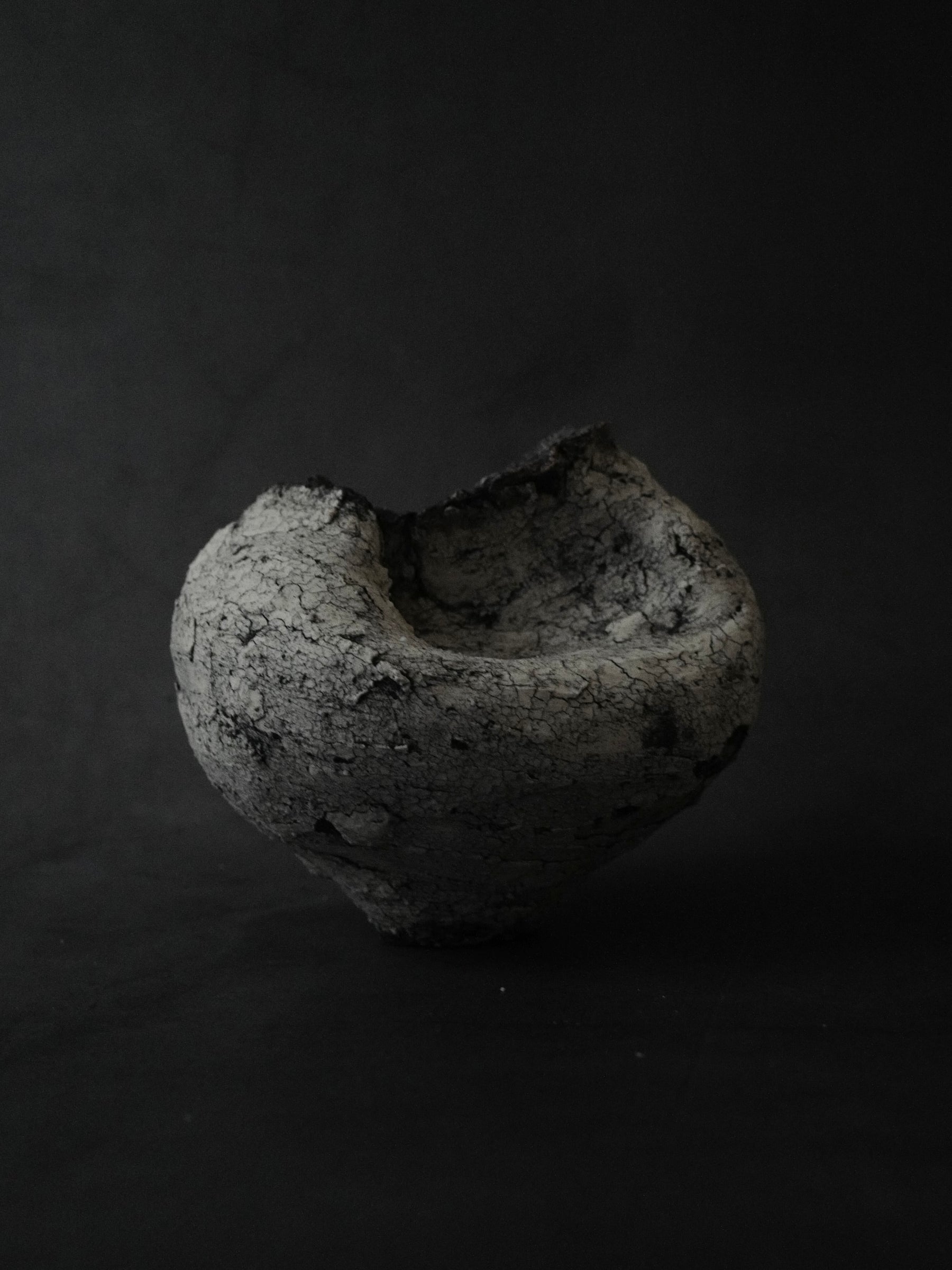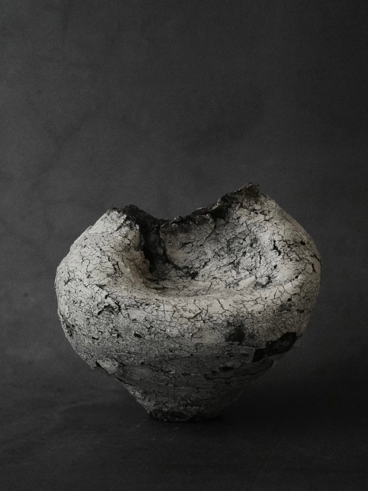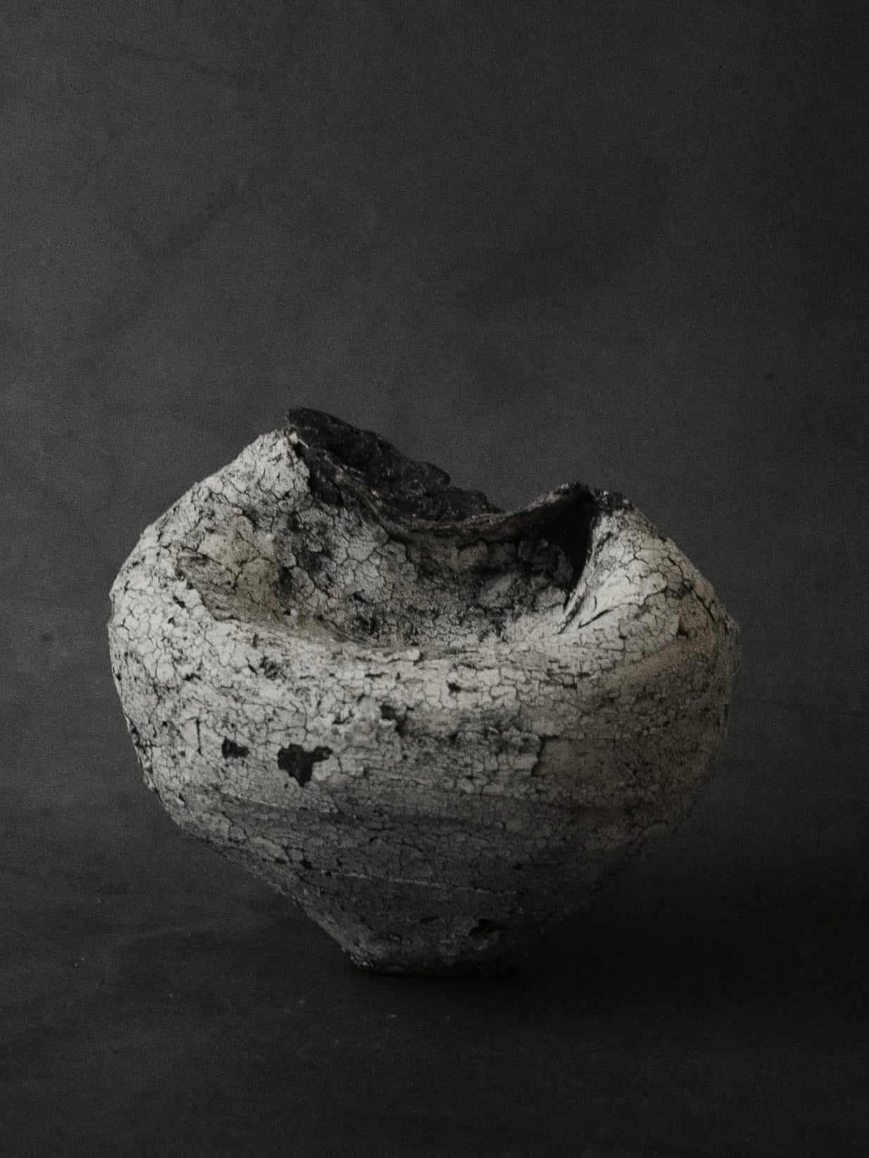 Handling & Care Over time, the piece may undergo changes in texture, peeling, or discoloration—these are integral aspects of its expression. Each work is protected with a varnish to slow pigment fading, and most are treated with a water-repellent coating. However, as the aesthetic prioritizes cracks and surface fragility, please avoid filling it with water. Enjoy it as an object of still presence within space, rather than as a functional vessel. While every effort has been made to capture the work’s true color and texture in photographs, subtle variations may appear depending on the lighting and environment in which it is viewed. For inquiries or additional photographs, please feel free to contact us.